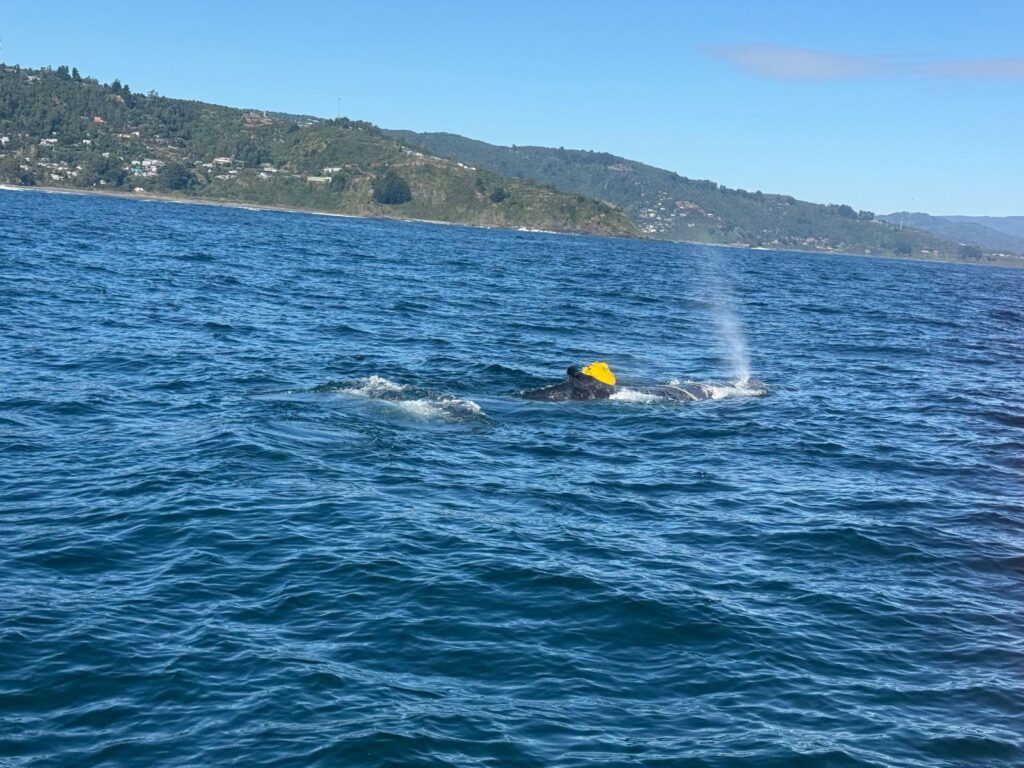 Liberan con vida a ballena enredada en cabos en la costa de Valdivia
